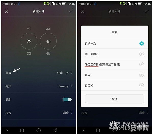 在重复之中,如果之前同步了法定节假日,这边也会出现智能跳过法定节假日的选择。