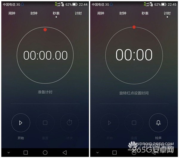 说完了日历,下面说日历的好基友——时钟。进入之后可以看到,时钟应用融合了时钟、闹钟、秒表和计时四大功能。