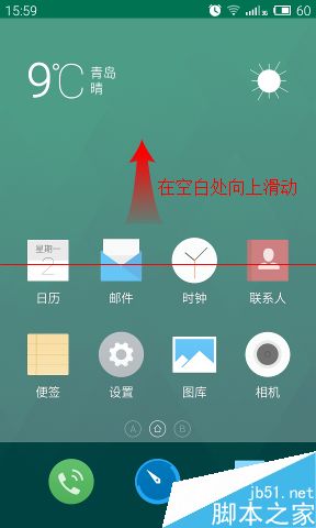 注:所谓空白区域,是指屏幕中间的部分;除了上面通知栏,和下方应用启动栏之外剩下的区域,如图用浅白色标识。不一定是大面积连续的空白;应用图标中间的空白处,也是可以的。