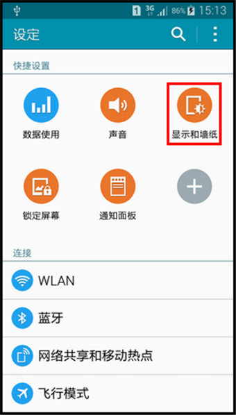 3.点击【显示和墙纸】。