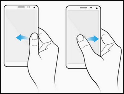 6.单手握住设备,并以一个快速的动作在屏幕左右边缘的中点与屏幕中央来回滑动。(若要启用单手操作,请断开USB数据线。)