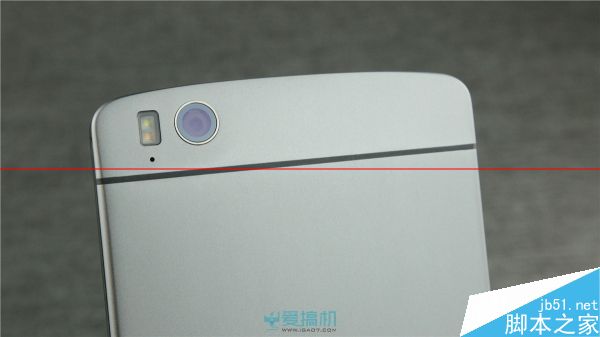 机身背面为3段式设计,中间的两条线,其实是镁铝合金机身上的天线隔断层。