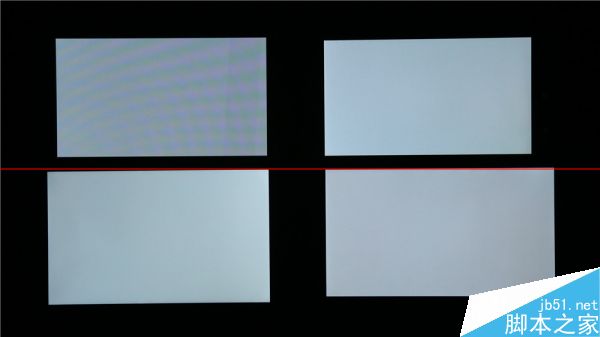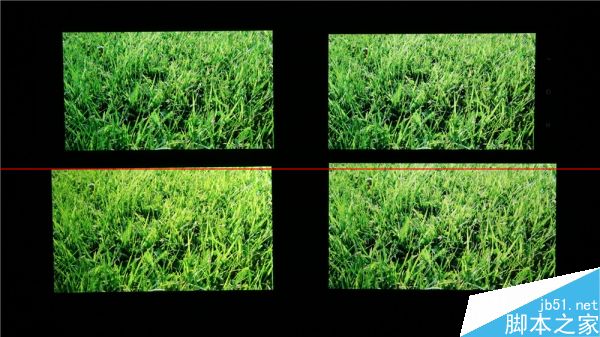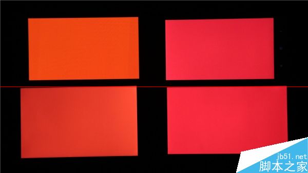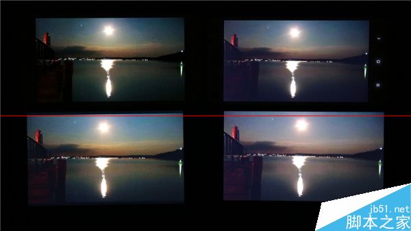 从左至右,分别为三星S5、魅族MX4 Pro、manta 7x和小米4,在大角下MX4 Pro的屏幕随着角度增加,出现了较为明显的亮度衰减;而manta 7x 虽然亮度变化不大,但也出现了泛红现象;而小米4在死亡对角线上则出现了明显的亮度波动。