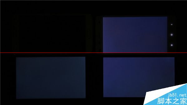 100%亮度显示黑色,S5的A屏为真正的纯黑,小米4和manta 7x都有轻微漏光现象,而且有点偏红,而有负液晶屏幕的MX4 Pro的黑色则更加纯粹,不过依旧有轻微漏光。