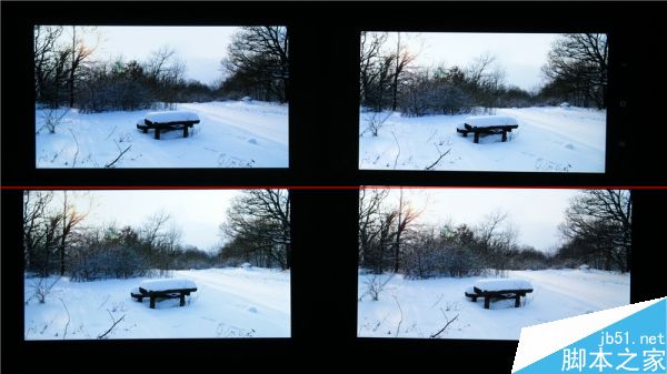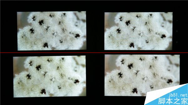 左至右,上至下分别是三星S5、小米4、魅族MX4 Pro和manta 7x。统一100%亮度显示白色,三星S5和manta 7x的屏幕都有轻微泛红,小米4偏蓝偏冷,MX4 Pro则有轻微偏黄。