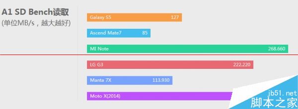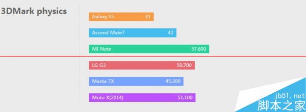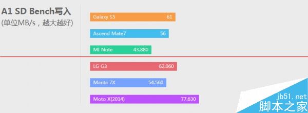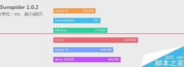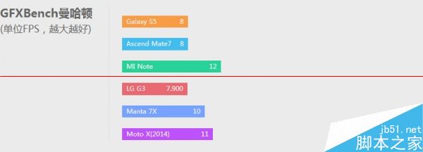 在我们的跑分库中,manta 7x的表现和性能配置一样的小米note、motoX表现相若,各项测试中和众旗舰或有胜负,CPU性能弱于三星S5的猎户座5422,但GPU表现上更强,打败高价低配Mate7更是耗无压力。