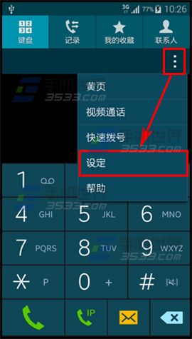 1)进入三星S6的拨号界面,点击右上角【...】,选择【设定】;(如下图)