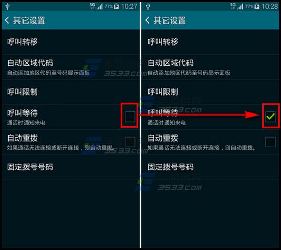 3)然后勾选【呼叫等待】选项就可以了。(如下图)