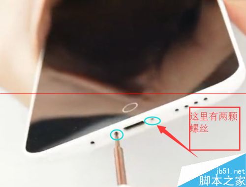 第一步:首先,将手机关机,在手机的底部电源插口处有两个螺丝,用螺丝刀拆除。