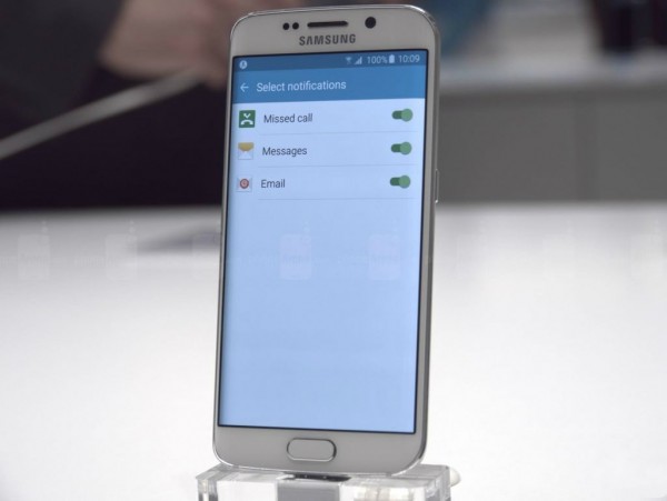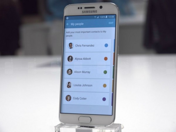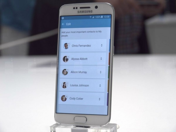 Galaxy S6 Edge 的侧面可以根据不同的联系人显示不同的颜色,比如恋人的来电或信息可以设为粉色,老板的来电或信息设为黑色,好朋友的颜色设为红色。这样,只要一看侧面屏幕闪烁的颜色即可知道是谁来电。