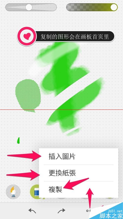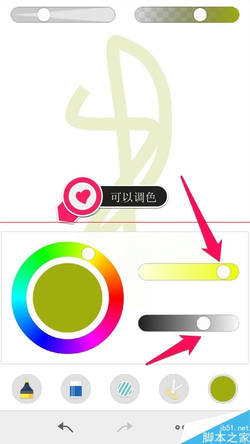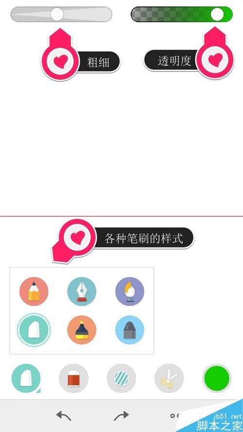 3、魅族魅蓝NOTE手机画板各种功能介绍,如:(画笔)笔刷这个工具有很多样式供你选择,可以每种(画笔)笔刷都去试试哦,也可以进行粗细及透明度的调整的哦,如图