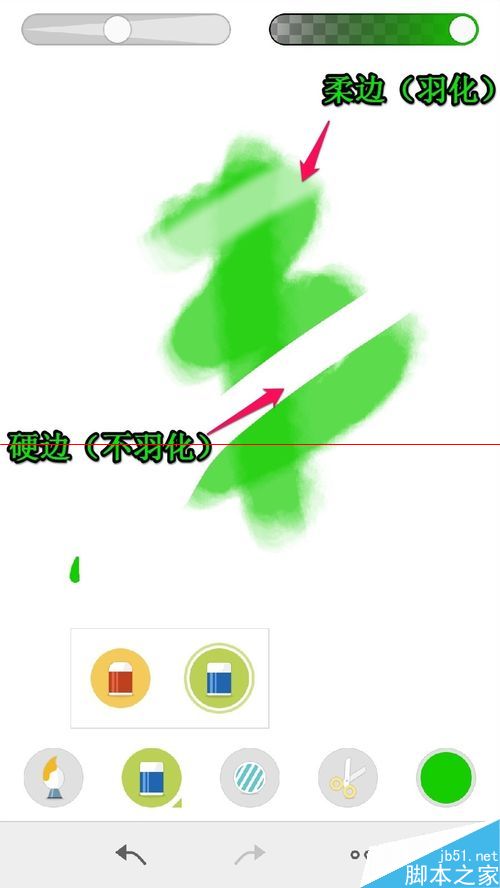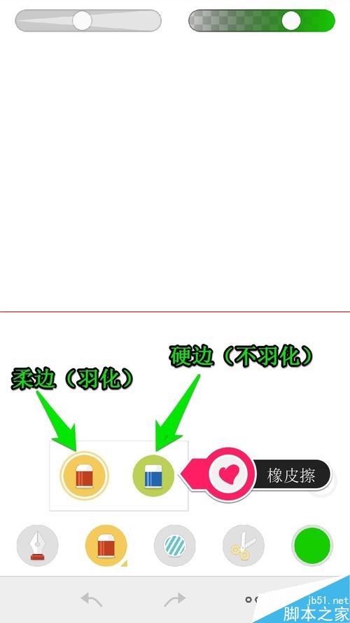 4、如:橡皮擦,如果你画错可以橡皮擦进行涂改哦,就像在纸张上做画一样的,橡皮擦也有两种模式,(一种软擦:这种擦拭有朦胧感,一种硬擦:这种就一刀血,擦拭很干净的),如图