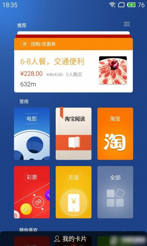 之前我们有了解过搭载Flyme powered by YunOS的魅族MX4,在界面上看来与正常 Flyme OS不同的是仅在左边多出的一屏卡片式设计的 Cloud Card 服务,YunOS 版的魅蓝手机也是如此,Cloud Card 与 Flyme 系统无缝衔接,只需要滑至最左边一屏即可进入,十分自然流畅。