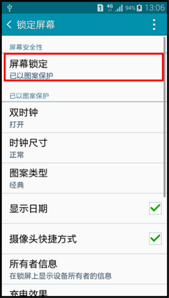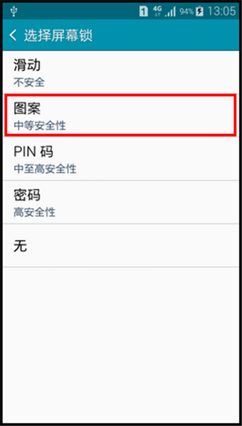 4. 点击【屏幕锁定】,然后选择【图案】。