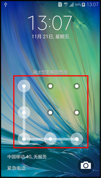 9. 当屏幕锁定时,绘制您所设置的图案后就可以进入主界面了。
