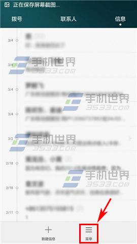 1)打开华为Mate7的【短信】,点击右下角【菜单】;(如下图)