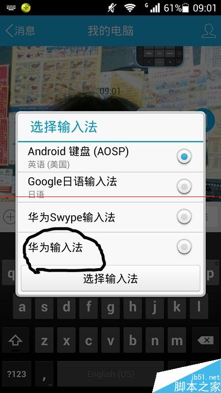 2、点击“选择输入法”,会有你手机里面的所有输入法,然后选择“华为输入法”,如图