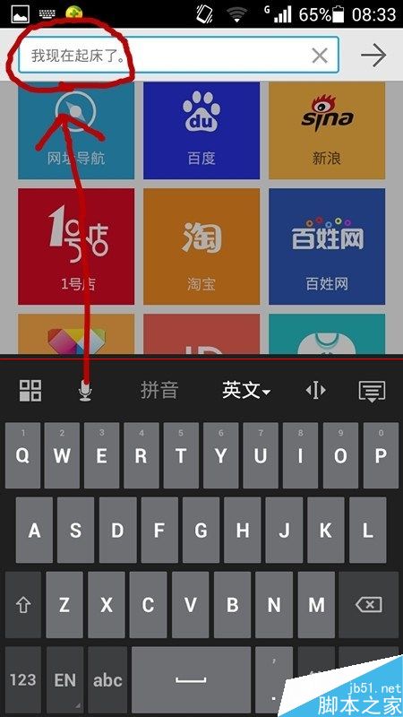 3、然后你可以看到输入栏上出现“我现在起床了”的字样。如图