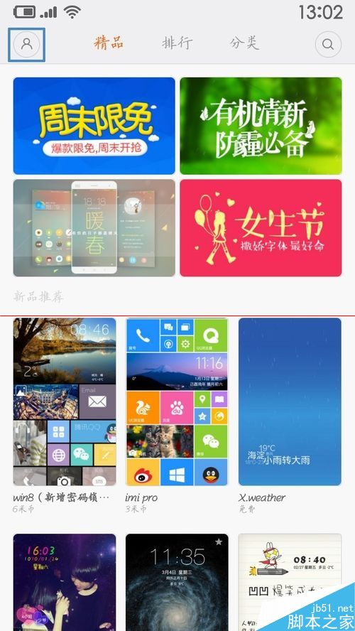 5、点击左上角的小头像图标就可以找到自己的默认主题了
