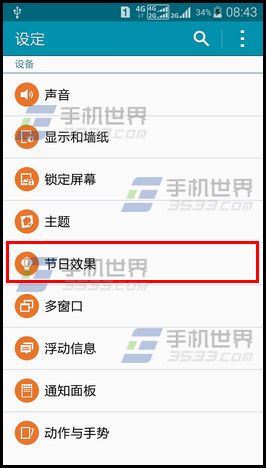 1)打开三星S6手机【设定】,选择【节日效果】。(如下图)