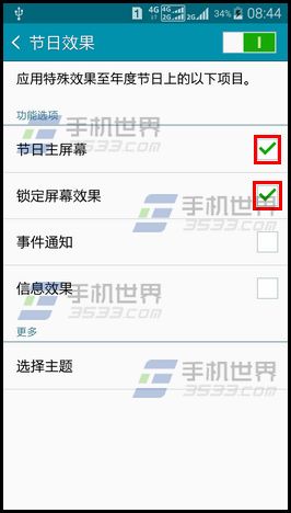 2)将该功能开启后,可根据自己的需求勾选【节日主屏幕】及【锁定屏幕效果】。通过上述设置后特殊日子到来就可以看到节日效果了。(如下图)
