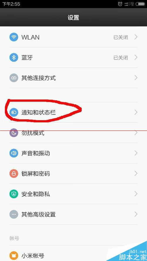 3、在设置里面找到——通知和状态栏,进入