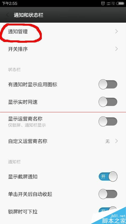 4、在通知和状态栏里面找到——通知管理,进入