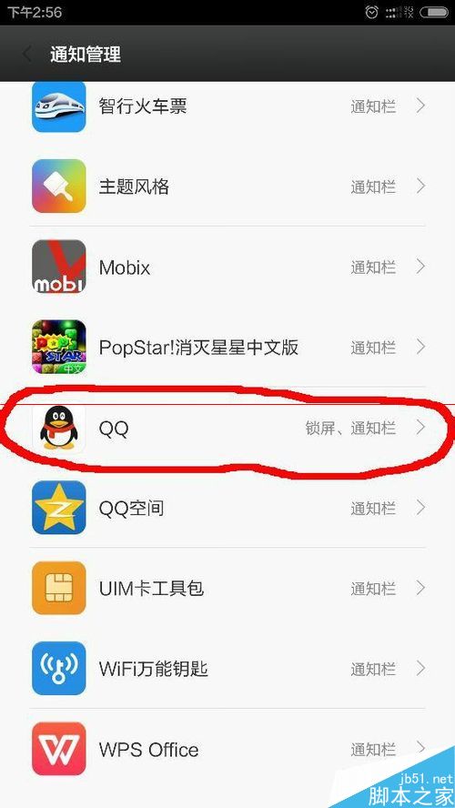5、在通知管理里面找到——QQ程序图标,点击