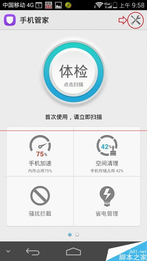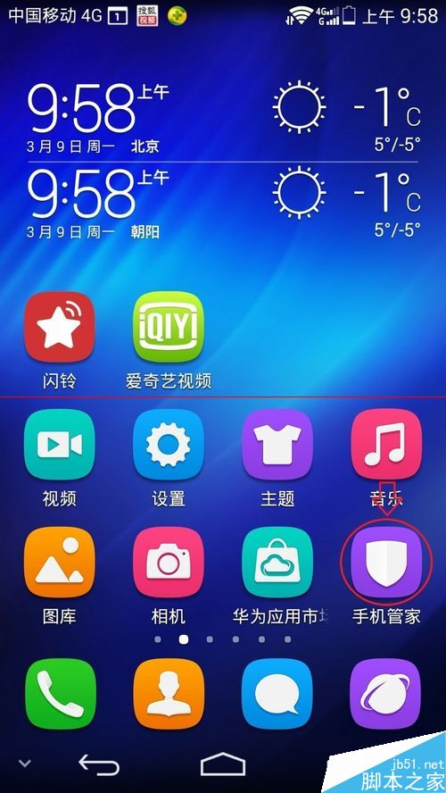 1、在手机桌面找到“手机管家”应用 (一般如果没移动过在首页就能看到)