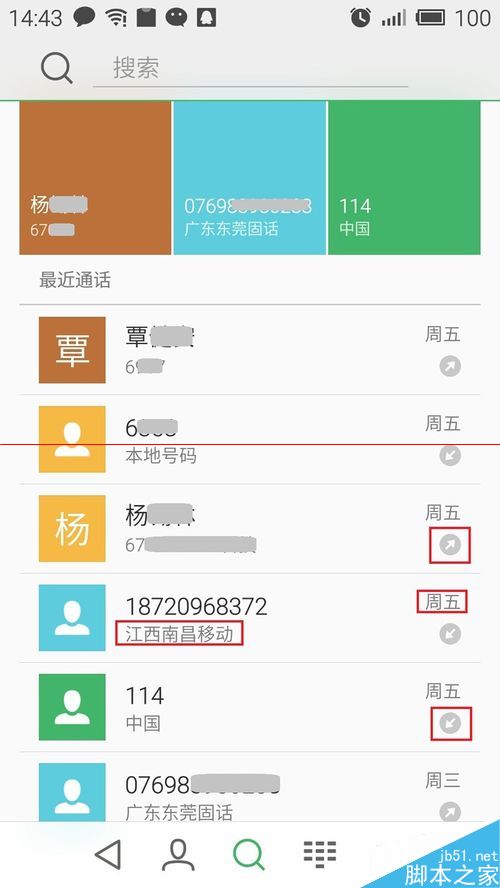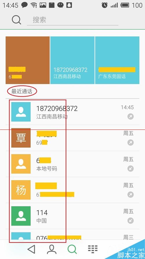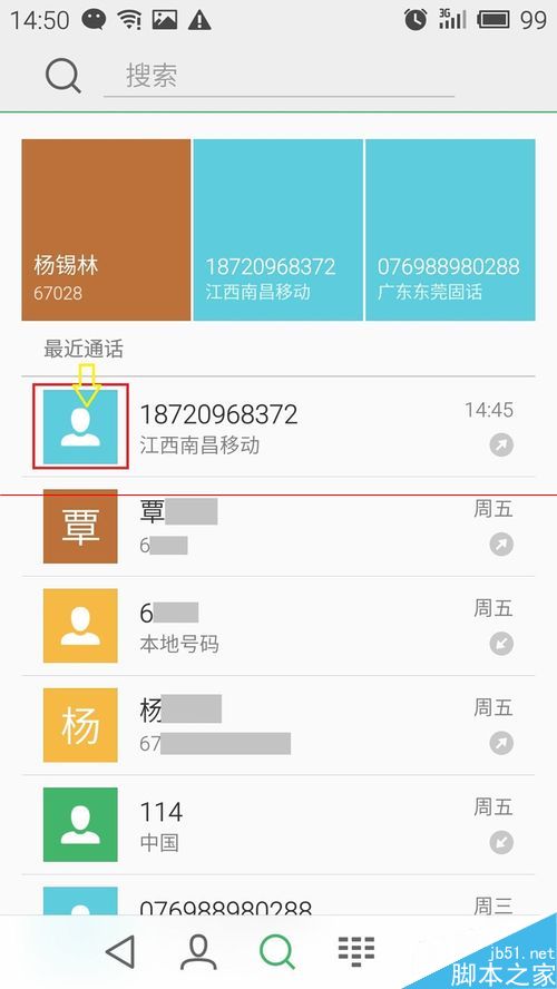 想要查看单个号码的详细信息,在‘最近通话’的下方列表中,点击需要保存的‘通话记录号码’的‘最左边图标’。