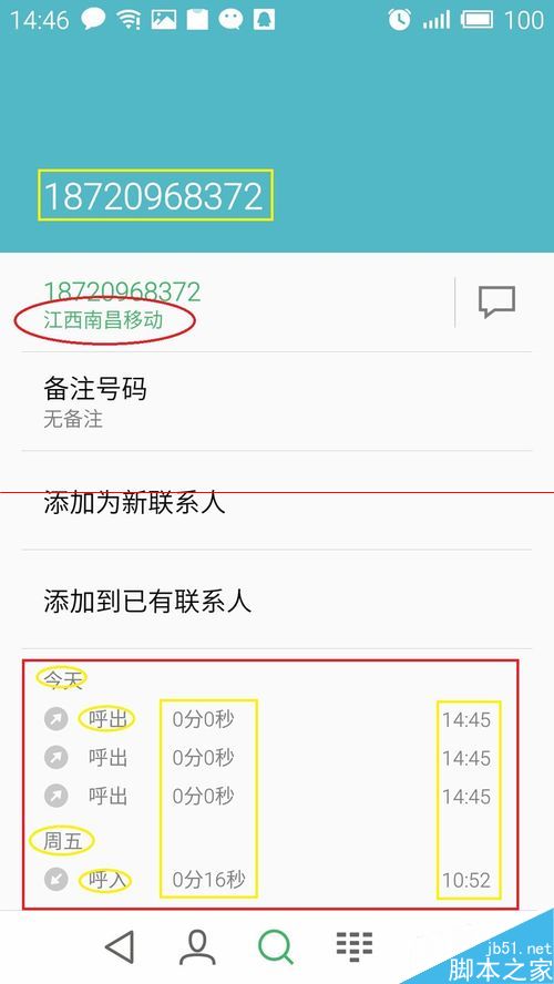 进入新页面后,可看到‘通话号码’、‘归属地’。