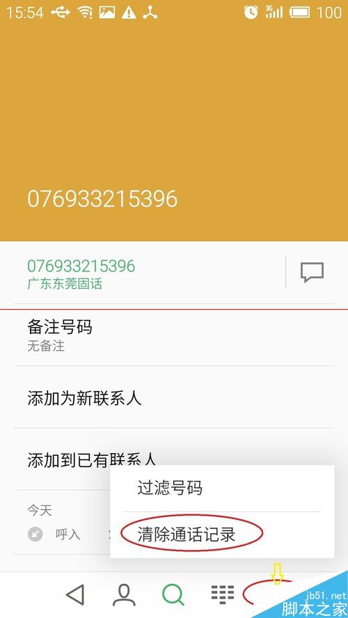 如果有必要进行一些删除‘通话记录’后,在选择通话号码后,在新页面下方的‘操作栏’,点击最右侧的‘…’图标,选择‘清除通话记录’,然后确认就行了。
