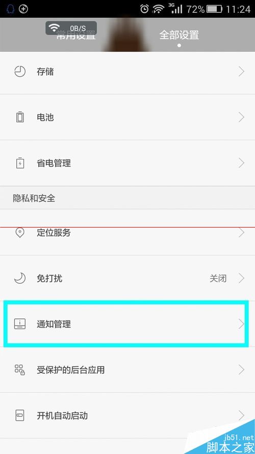 2、在设置界面中找到“通知管理”功能按钮,点击进入。具体操作如图