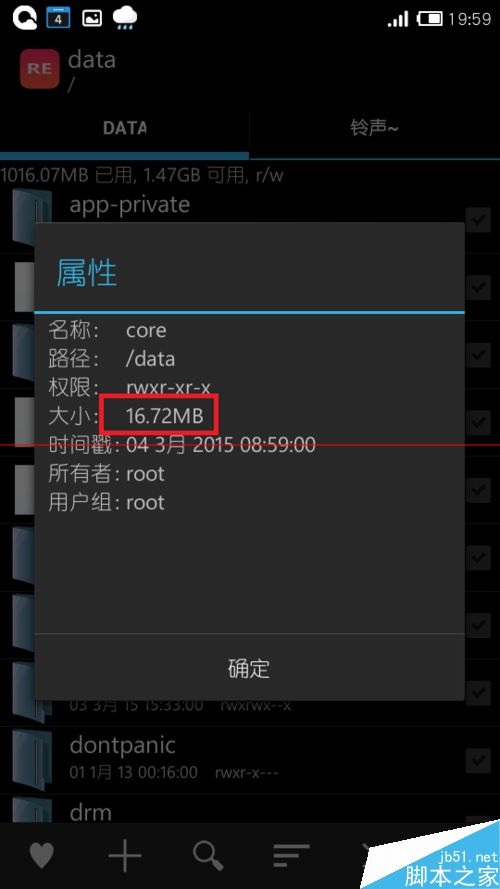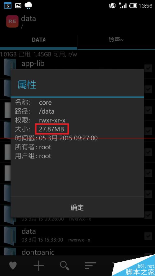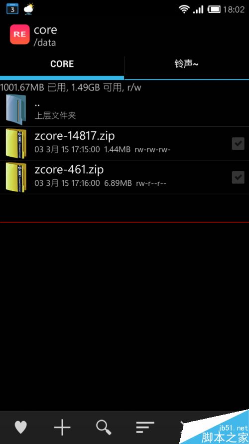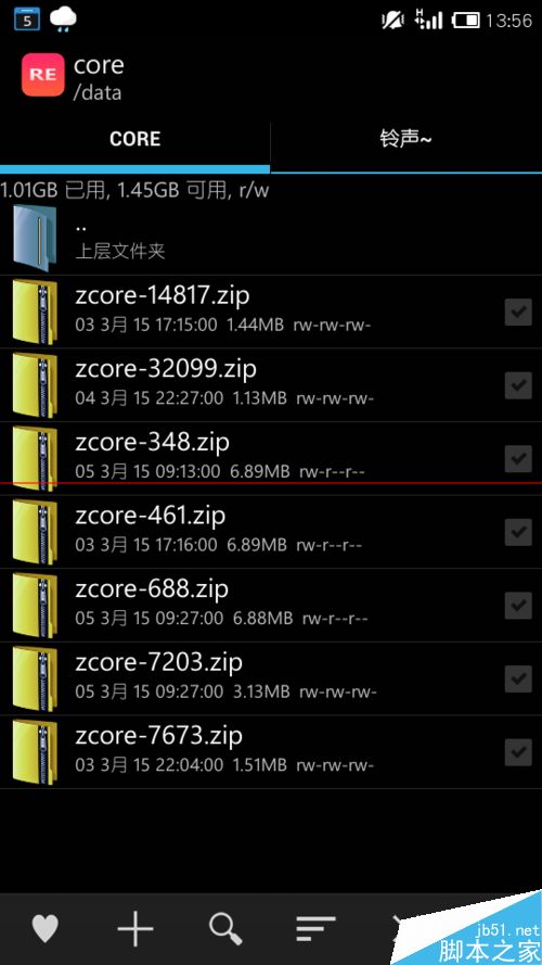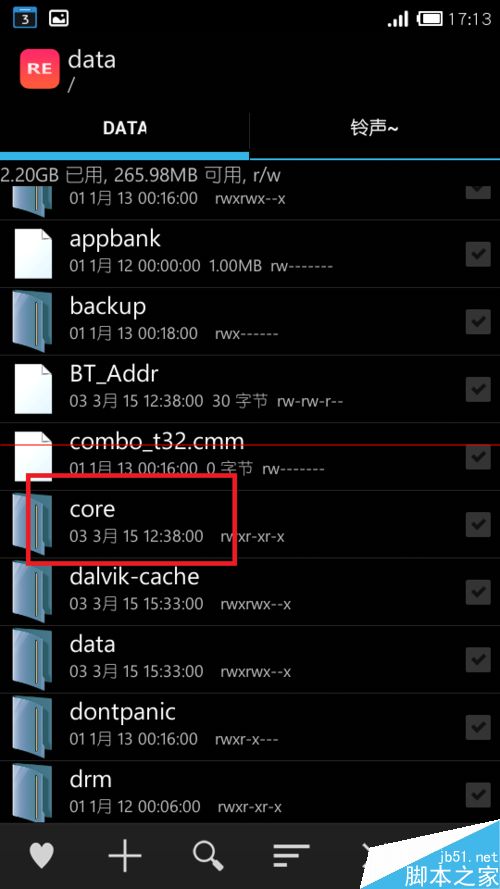 1、开启系统Root权限后,打开Re文件管理器,进入到根目录中的data文件夹中,在里面找到一个名为core的文件夹: