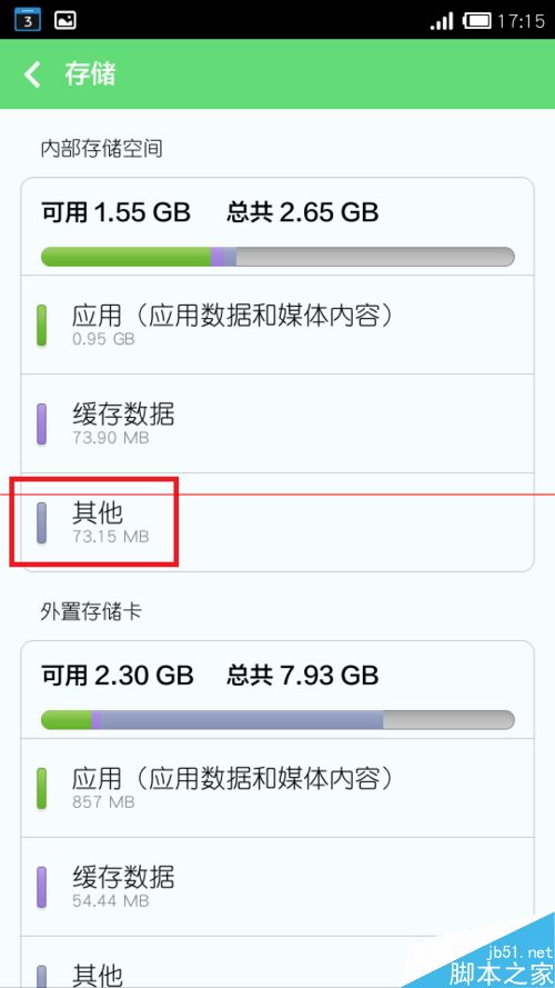 4、删除后,再回到“储存”中去看,就会发现“其他”一项占用空间已经变得非常少了,随之内部空间也变大了: