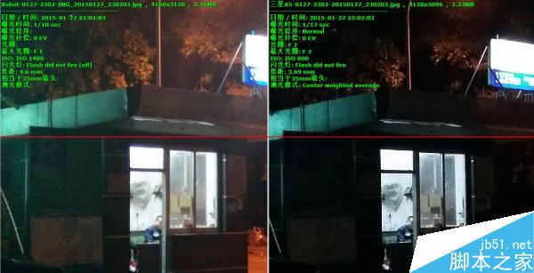 因为这是当时测三星A5的样张群,所以特别测试了A5的夜景模式,左侧是Xshot和米2s的1300万像素样张,右侧是A5夜景模式下的800万像素样张(HDR模式下也会变成800万)。