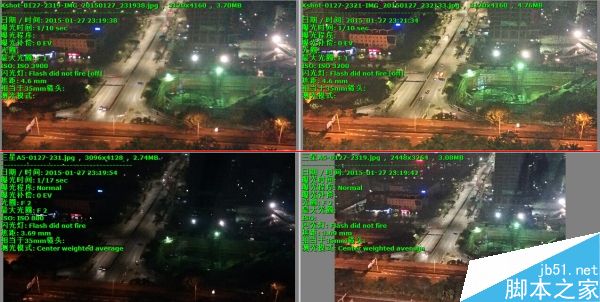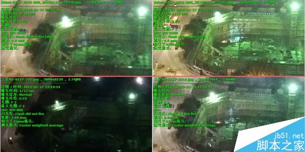 上侧为Xshot的普通模式和夜景模式,下侧为A5的普通和夜景模式。