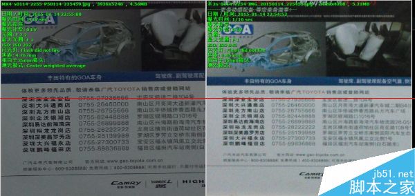 放大中央后,小米2s几乎没有对噪点进行处理,亮度低且红绿噪点多,导致左侧方框中的电话号码都难以辨认,非常影响观感,但背景细节(右侧方框)非常清晰锐利;MX4 的ISO更低且经过噪点涂抹,画面干净很多,但物体边缘模糊,细节丢失严重。