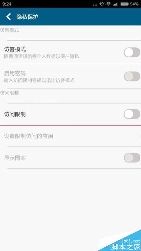 4、进入“隐私保护”后,选择“访问限制”,如图所示: