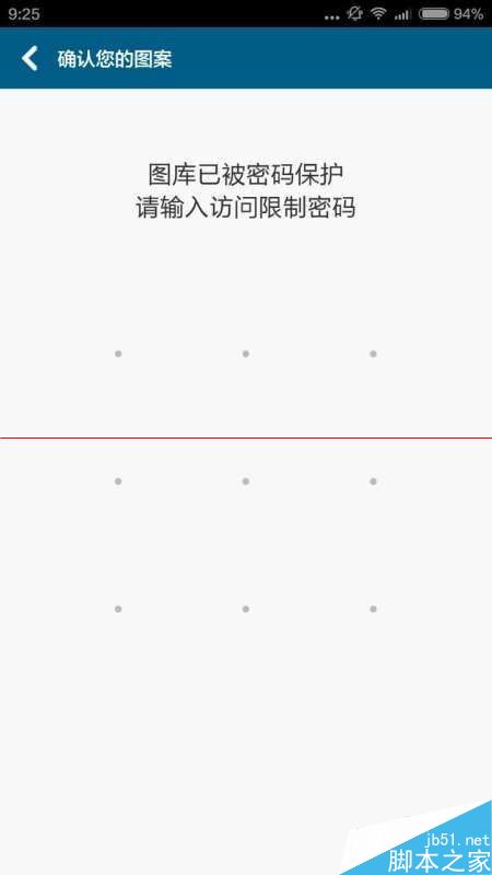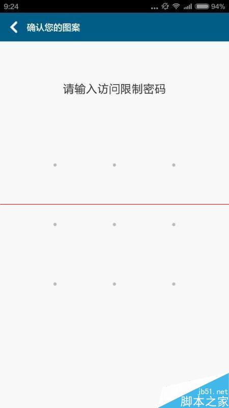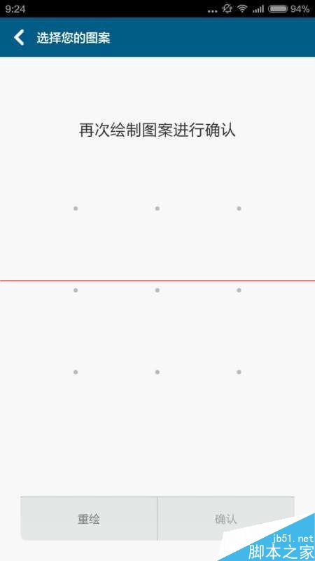 9、当我们选择好我们要设置的程序后,会再一次出现“确认您的图案”,画出你设置的图案,这样就设置成功了,当我们再一次访问这个程序的时候,要能画出这个图案密码,才能访问这个程序,如图所示: