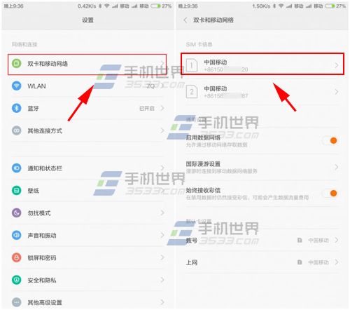 1)打开小米Note手机【设置】找到【双卡和移动网络】点击要修改名称的SIM卡