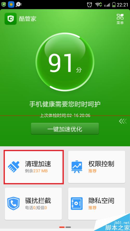 小编上年买了部酷派大神, 随着安装应用的增多,运行内存占用越来越高,不得不经常使用一键加速,可是每每加速有些想保留的进程却被查杀,以致于投鼠忌器,刚开始找了好久找不到哪里可以设置不被查杀进程,终于在昨天找到了,遂来分享一下!