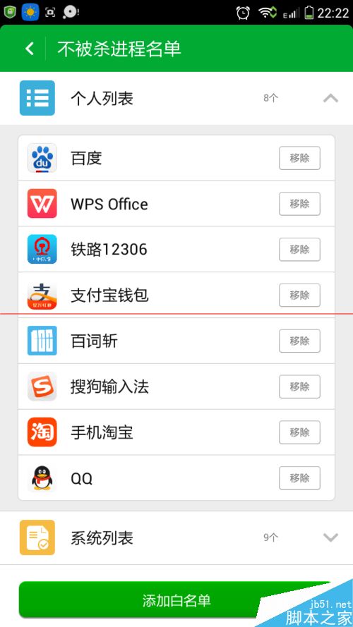 5、添加白名单,就是添加不被查杀的进程,选择自己要保留的进程即可;