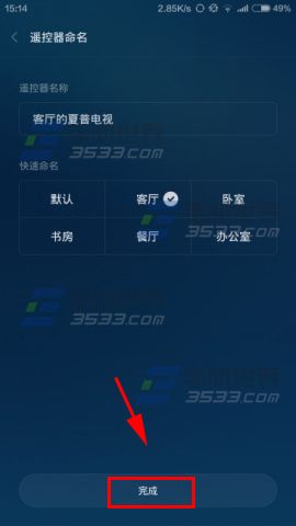 3)输入名字点击【完成】即完成遥控器的设置,当我们要使用遥控器时可打开【小米遥控器】,选择要遥控的设备。(如下图)