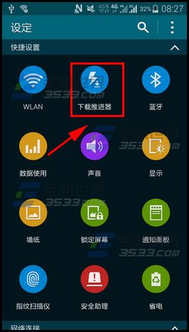 1)进入三星S6【设定】后点击【下载推进器】。(如下图)