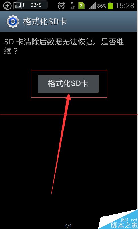 5、选择【格式化SD卡】后会再次让你确认,再次点击【格式化SD卡】。