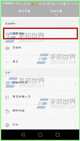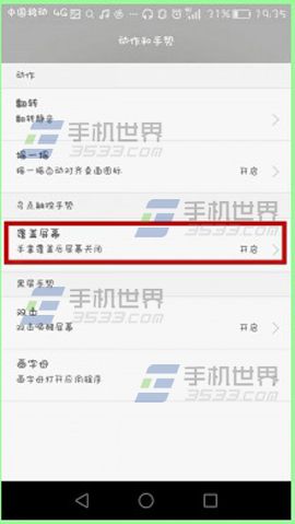 1)打开华为G7【设置】找到并点击【手势控制】,点击【覆盖屏幕】。(如下图)