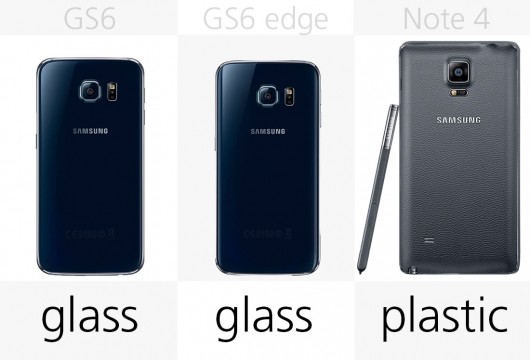 三星最终放弃了塑料后盖而是采用了康宁的大猩猩4背面。而Galaxy Note 4则是采用了伪皮革的塑料材质。