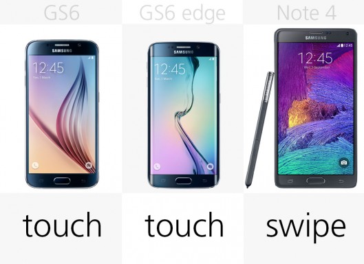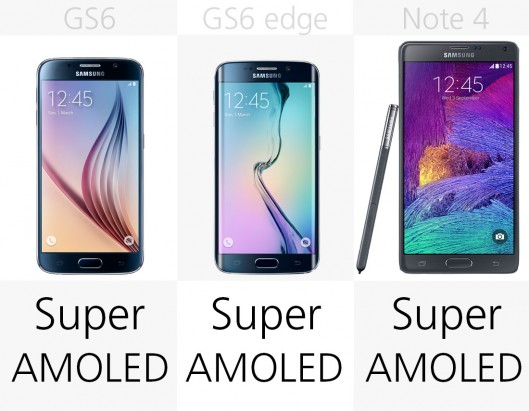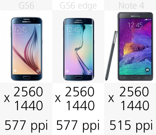 所有三款Galaxy设备都装备了非常锐利的Quad HD屏幕,因为Galaxy S6的屏幕更小,所以在像素密度上要比Note 4高出12% 。