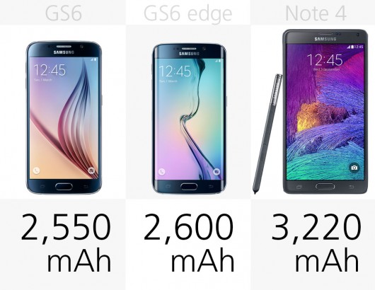 Galaxy Note 4在此前的续航测试中表现良好,在多媒体测试环节(开启WiFi额,亮度在75%)每小时的耗电量在10%左右。而至于两款Galaxy S6还需要进一步的测试。
